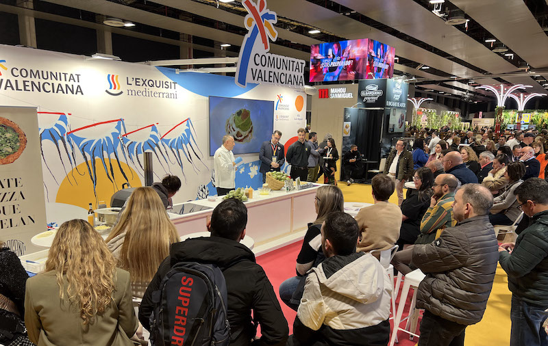 La Joya de la Huerta es uno de los productos expuestos dentro del stand del Patronato de Turismo de la Costa Blanca y, además, fue la protagonista del showcooking realizado este martes por el chef Moisés Martínez, del restaurante El Buey de Almoradí.
