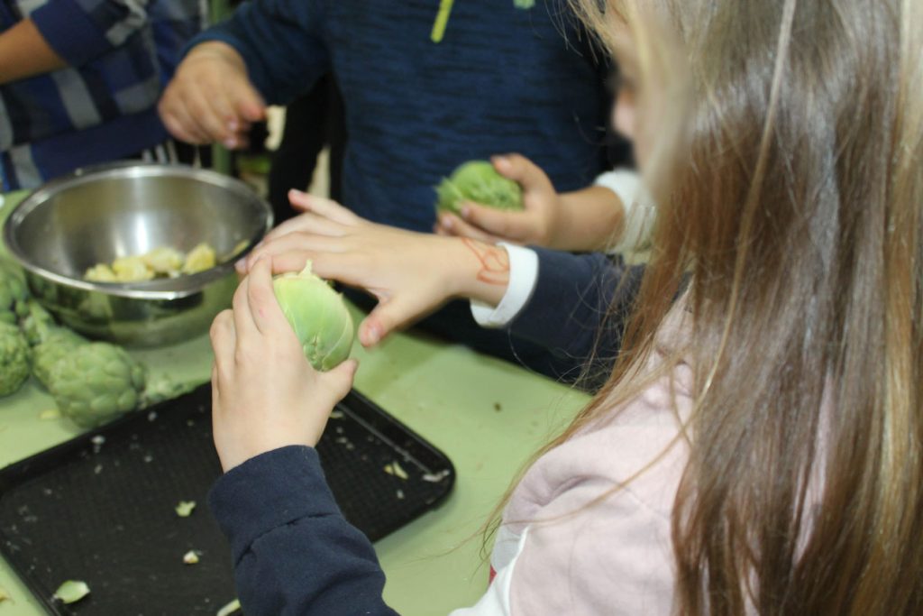 De esta forma, los alumnos han pelado esta hortaliza para preparar unas deliciosas chips de alcachofa, así como tartaletas de ensaladilla con alcachofa de la Vega Baja en conserva.