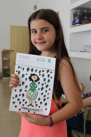 La alumna Lisa Koenst de cuarto de primaria del colegio Heredades de Almoradí ha ganado la cuarta edición del concurso de dibujo de la campaña escolar de la Asociación Alcachofa de la Vega Baja. El primer premio consiste en una tablet y un vale de material escolar para su colegio valorado en 125 euros.